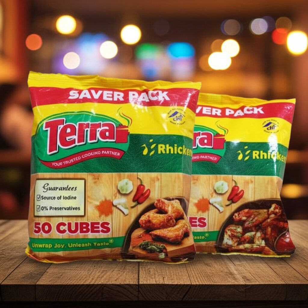 Bring irresistible taste to your cooking with Terra Chicken 50 Cubes. Specially crafted with real chicken flavor and seasoning spices, each cube adds depth, aroma, and deliciousness to your meals. Whether you’re preparing jollof rice, stew, soups, beans, or sauces, Terra Cubes blend effortlessly, giving your dishes that authentic homemade taste.